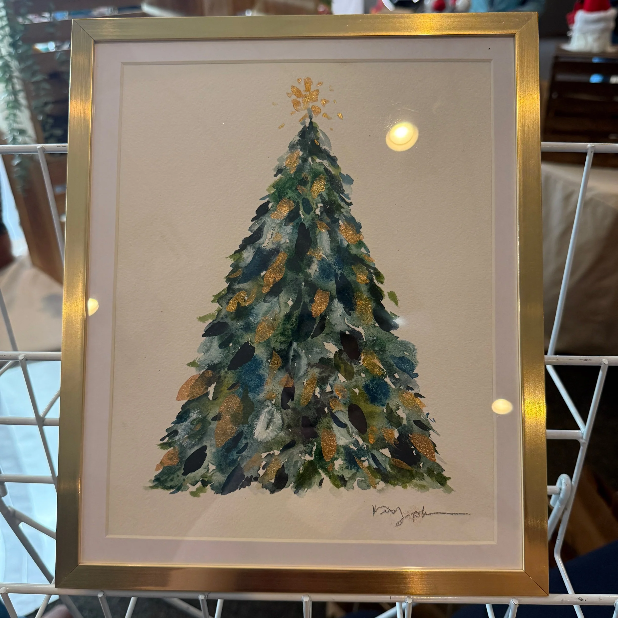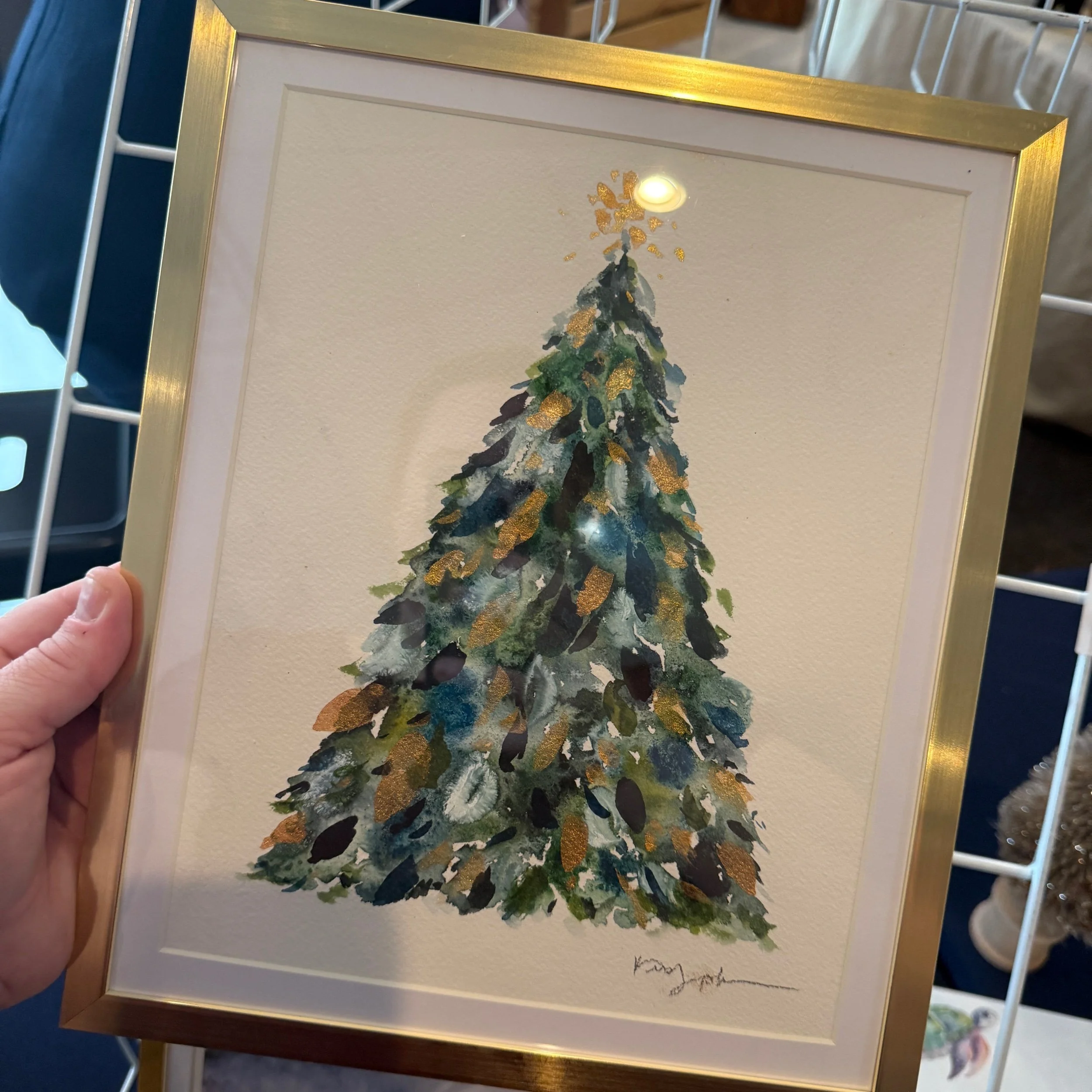 The Spirit of Christmas is an ORIGINAL 8x10” watercolor painting, in a light 12x14” gold frame & a mat. Frame has hardware for hanging and a kickstand at the back for tabletop or your mantle.